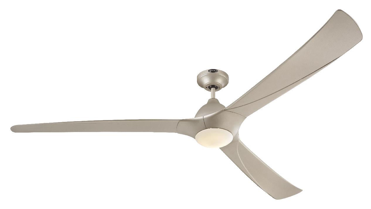 This high-quality, contemporary Techno II ceiling fan features energy-saving components such as LED technology, a DC motor, and a 72-inch blade span. Designed to generate comfortable breezes with quiet efficiency, the powerfully performing Techno II will add a dramatic focal point in great rooms and large open spaces. Let the warm, metallic feel of the titanium finish and the sleek, smooth style of the outstretched blades add graceful movement and sophistication to your great room, loft or studio. The simple three-bladed style lends itself to minimalist interiors, will add radiance to modern spaces, and be the perfect highlight in Industrial-style homes.