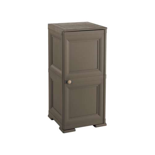 All-plastic two-story wenge cabinet with doors in imitation of wooden furniture. It is quality furniture TONTARELLI edition of OMNIMODUS.Furniture is made from high quality polypropylene which is resistant to weathering and UV radiation. Perfect for use at home - in the laundry room, garage, basement, as well as for outdoor use in the garden - the swimming pool, balcony, etc. Easy and quick installation.There are cabinets of various types, sizes and colors, so you can easily choose one that suits your requirements. * all-plastic two-storey box in imitation of wooden furniture * Made from high quality polypropylene * resistance to weathering and UV radiation * Suitable for both home and outdoor použití * Easy and quick installation Features: * Dimensions: 40x43x85, 5 cm * Material: polypropylene * color: Wenge * Maximum shelf load capacity: 30 kg