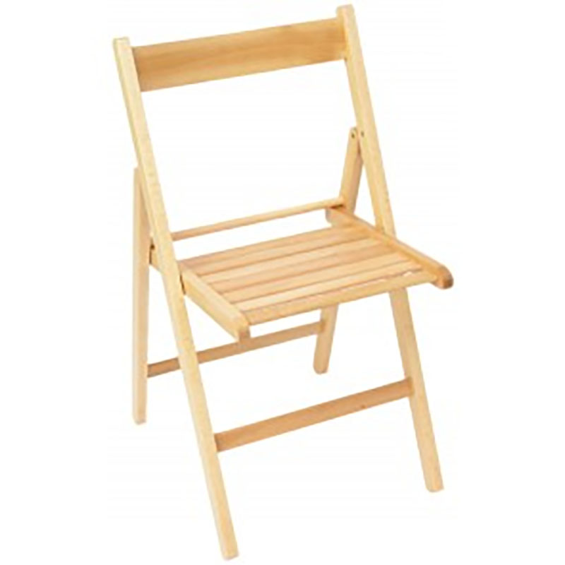 Folding chair in polished beech wood, equipped with rustproof iron fittings.
