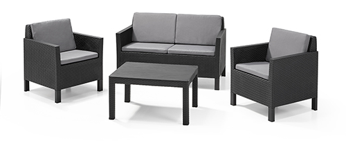 The Chicago lounge set made of wicker has an elegant design. Because of the Rezolith finish on the slightly flaring armrests and table top, you create a warm look in your garden. Everyone feels welcome in your garden, the cushions patiently provide support during every conversation. Is your summery day progressing a bit more exuberantly? Then you clean this wicker in no time.