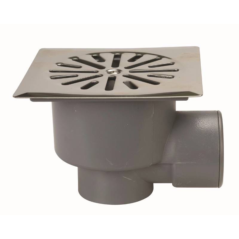Shower Trap Grey/Stainless Steel 13cm x 13cm 40/50mm Side/Bottom