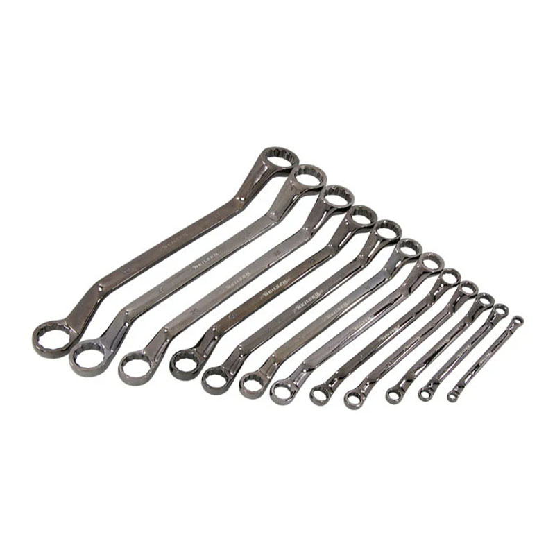 12pc Offset Ring Spanner Set 24 Sizes : 6 x 7 | 8 x 9 | 10 x 11 | 12 x 13 | 14 x 15 | 16 x 17 18 x 19 | 20 x 22 | 21 x 23 | 26 x 28 | 27 x 29 | 30 x 32mm Drop Forged / Black Nickel Plated / Mirror Polished