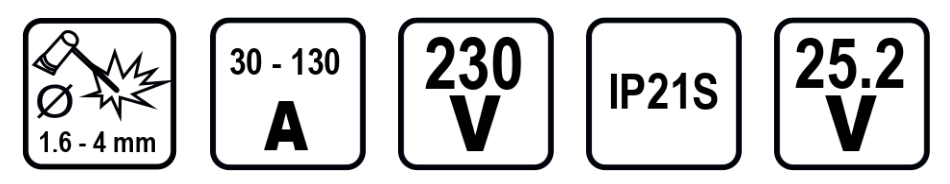- Welding current (MIG/MAG) 30-130 A
